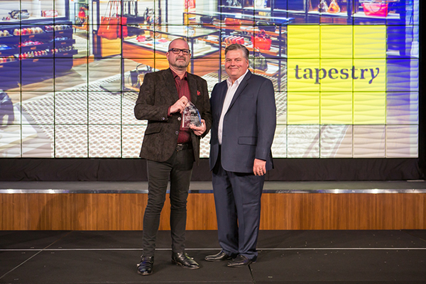 Bob Linhares of Tapestry (left) poses with Aptos Sales leader Frank Lord after accepting the Speed to Value Award.[/caption]