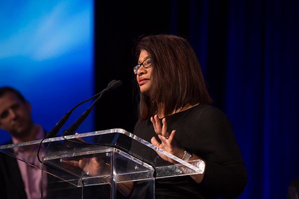 Sruti Patnaik of ROSS Stores accepts the Customer Experience Award[/caption]